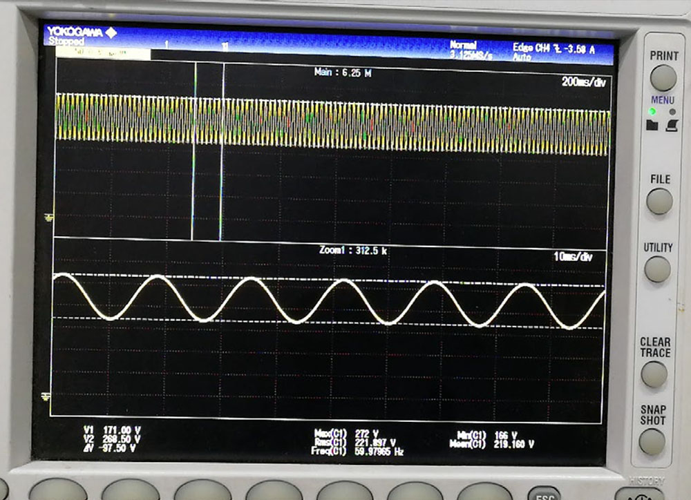 220Vdc 오프셋에서 60Hz의 리플(무부하 상태)