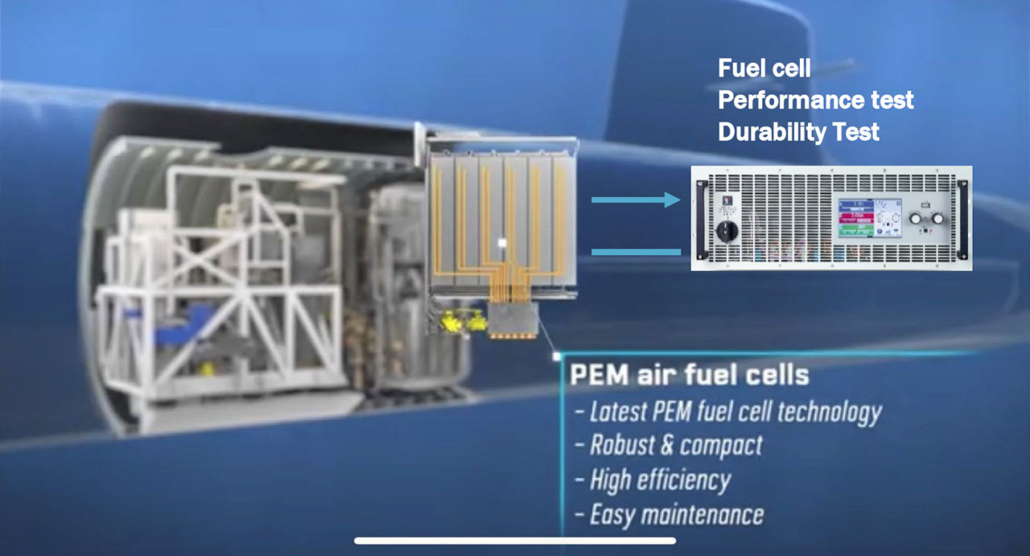 Siemens Marine의 고분자 전해질 막 (PEM) 연료 전지는 잠수함에서 외부 공기 독립적 인 전기 에너지 생성을 가능하게 하는 미래의 물결입니다. 전지는 연료로 수소와 산소만을 필요로 하기 때문에 잠항 기간을 상당히 연장할 수 있습니다. 이로 인해 이런 저온 연료 전지가 장착된 잠수함은 배터리를 재충전하기 위해 상당히 자주 수상해야 하는 기존 잠수함보다 훨씬 우수합니다. 이러한 새로운 디자인은 훨씬 더 효율적이며 배기 가스를 전혀 배출하지 않습니다. 전기 외에 물과 열만 생성하는 전기 화학적 작용 메커니즘 덕분에 PEM 연료 전지는 소음이 전혀 발생하지 않습니다. 견고하고 낮은 자기신호 및 비자성 설계는 장기 사용을 위해 특별히 제작되었으며 예상 서비스 수명이 수년이 이르며 효과적이고 경제적인 수명주기 지원 패키지가 제공됩니다.