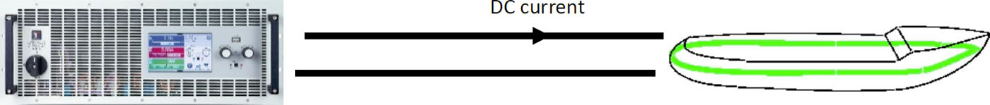 선박의 음극 부식 방지 장치는 선박의 강철 몸체의 열화를 방지하기 위해 프로그래밍 가능한 DC 전원 공급 장치로 작동됩니다. 선박의 음극 보호는 주로 선체에 부착된 갈바닉 양극이나 혹은 대형 선박의 경우 ICCP에 의해 구현됩니다. 선박은 검사 및 유지 보수를 위해 정기적으로 물에서 나오기 때문에 갈바닉 양극을 교체하는 것은 간단한 작업입니다. 갈바닉 양극은 일반적으로 물속의 항력을 감소시키는 형태로 설계 되어있으며 항력을 최소화하기 위해 선체 표면에 맞춰져 장착됩니다. 요트와 같은 비금속 선체로 구성된 소형 선박에는 선외 모터와 같은 영역을 보호하기 위해 갈바닉 양극이 장착되어 있습니다. 모든 갈바닉 음극 보호와 마찬가지로 이러한 장치는 양극과 보호대상 사이의 견고한 전기 연결을 기반으로 합니다.